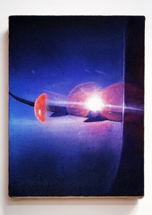 To Burch, the VHS medium's glitches and colour distortions symbolise the mind's imperfect recall where silhouettes and scenes from the past become fleeting yet significant mental imprints. With their grainy, ethereal qualities, his paintings serve as a metaphorical lens that deliberately obscures details to mirror the way in which digital technologies can be corrupted or lost.