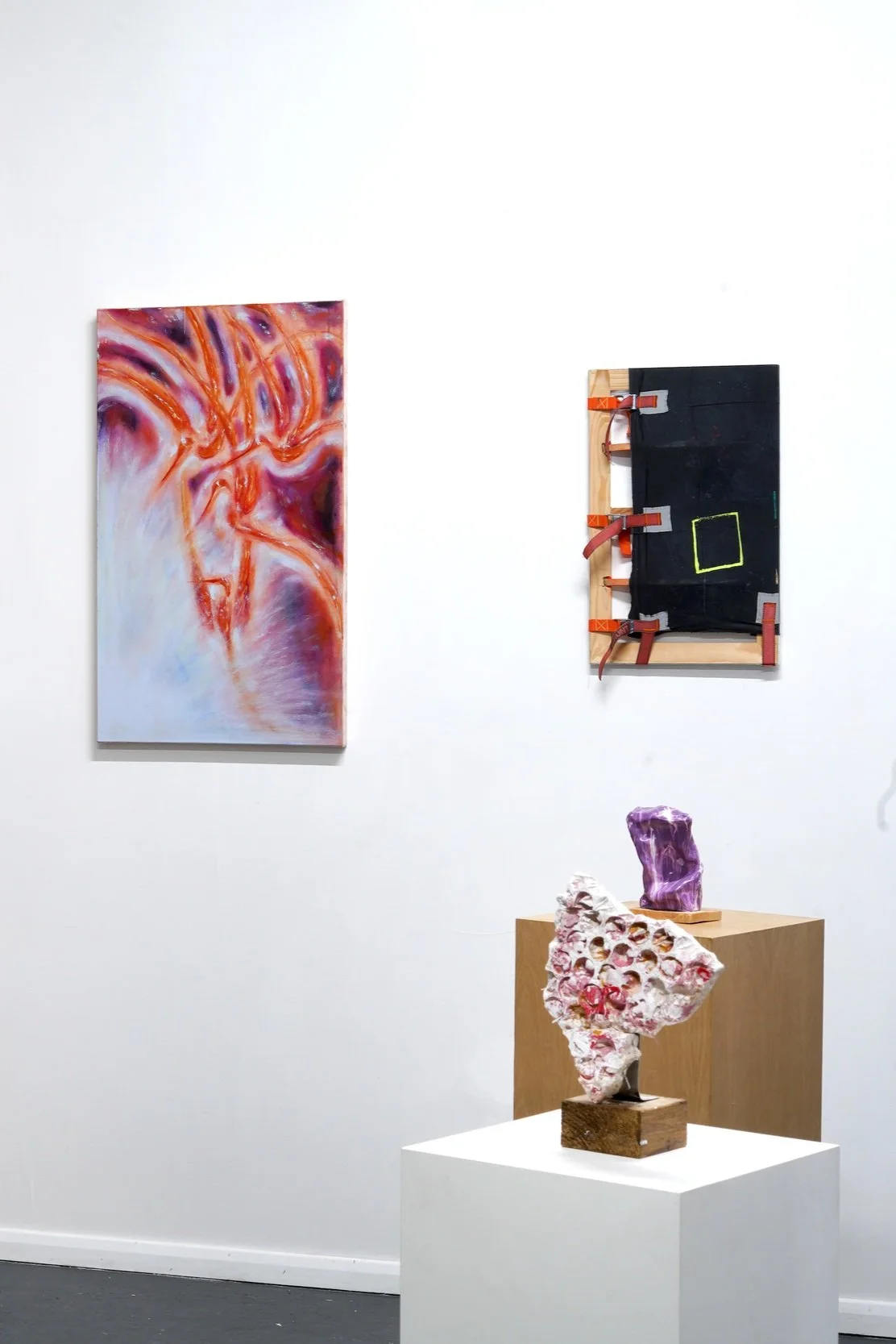The term ‘energeia,’ originally coined by Aristotle, means ‘being-at-work’ and serves as the root for our modern word ‘energy.’ The sculptures and paintings by Eva Dixon, Ashley Cluer and Salomé Wu offer viewers an opportunity to reflect on the type of energy each piece conveys. The work will create a space for personal interpretation and emotional connection, aligning with Aristotle’s notion of ‘energeia’ as an active, experiential process.