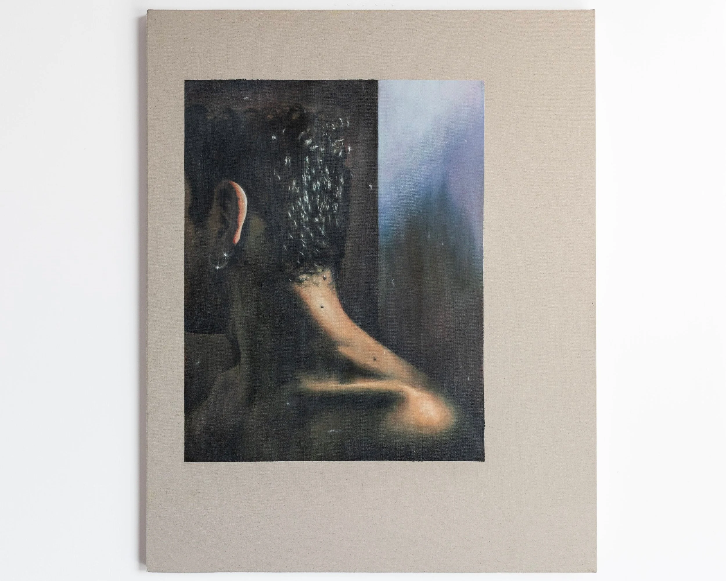 Mark Burch (b. 1996, Trowbridge, UK) is a London-based painter whose work delves into themes of memory, nostalgia, dreams, and desire. His creative process begins with pre-existing VHS footage, films, found imagery, or his own photographs. He then edits and collages these materials to craft hazy snippets of unknown narratives on canvas with oil paint. His paintings evoke the visual language and structure of social media platforms; one painting resembles a ‘post’ on the canvas, while another evokes the sensation of scrolling.