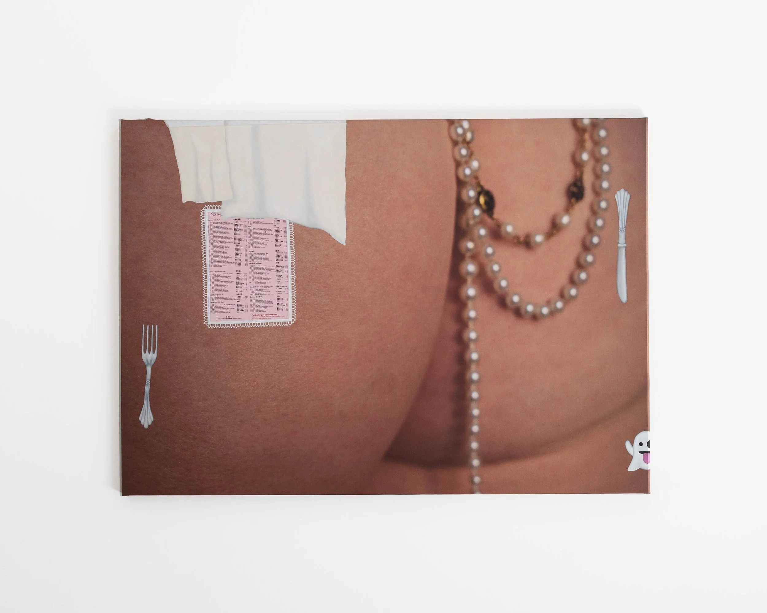 Charlie Henzi (b. 2001, Seattle, USA) is a graduate of the Royal College of Art (MA Contemporary Art Practice) and Central Saint Martins (BA Fine Art). Charlie creates highly curated collages with a painterly feel by blending images that she has photographed with her own drawings then printing them onto fabric. Through the incorporation of SMS symbology like emojis, Charlie’s work both pokes fun at and epitomises digital girlhood.